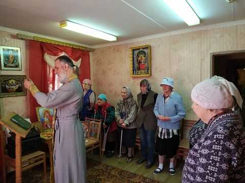 В Специализированном жилом доме для граждан пожилого возраста и инвалидов есть собственная освещённая молитвенная комната. Молебны в ней проходят два раза в месяц. 13 мая отец Сергий провёл для прихожан праздничный Пасхальный молебен.