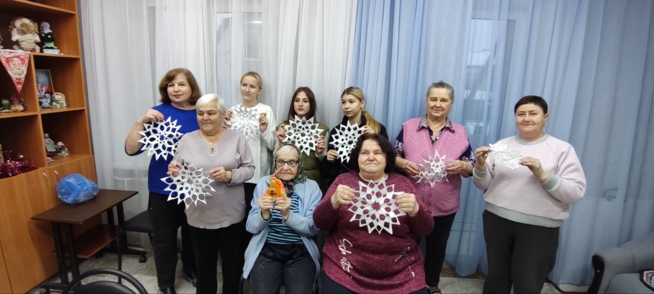 Волонтерский отряд «Лучики добра», состоящий из воспитанников и педагогов Краснобаковского детского дома провели для жителей отделения «Специализированный жилой дом для граждан пожилого возраста и инвалидов» ГБУ "КЦСОН Краснобаковского муниципального округа" мастер- класс: «Новогодние окна-снежинки». Инструктор по труду детского дома Хорева Н.И. рассказала историю создания бумажной снежинки, как, для чего и чем украшали ёлку наши предки.Затем для того, чтобы сделать красавицу снежинку, детям и жителям раздали листы белой бумаги, клей, ножницы. Приложив немного фантазии и умения, участники мастер- класса совершали чудо — простой лист бумаги превратили в чудесную снежинку. Снежинки получились у всех на славу!Все участники мероприятия получили удовольствие, заряд бодрости и прекрасное новогоднее настроение. Белоснежными снежинками воспитанники детского дома украсили окна в подъездах жителей Спецжилдома.