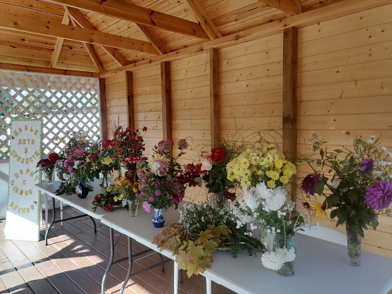 В отделения «Специализированный жилой дом для граждан пожилого возраста и инвалидов» ГБУ "КЦСОН Краснобаковского муниципального округа" с 16 по 19 сентября организована выставка цветов. Как всегда в выставке цветов активное участие приняли не только сотрудники, но и жители, а также соцработники, обслуживающие в отделении граждан пожилого возраста и инвалидов. Все любовались интересными композициями цветов, которые были размещены в прекрасной летней беседке и получили массу приятных эмоций и впечатлений. Хочется поблагодарить всех участников выставки. Желаем жителям и сотрудникам отделения осеннего настроения и душевного тепла!