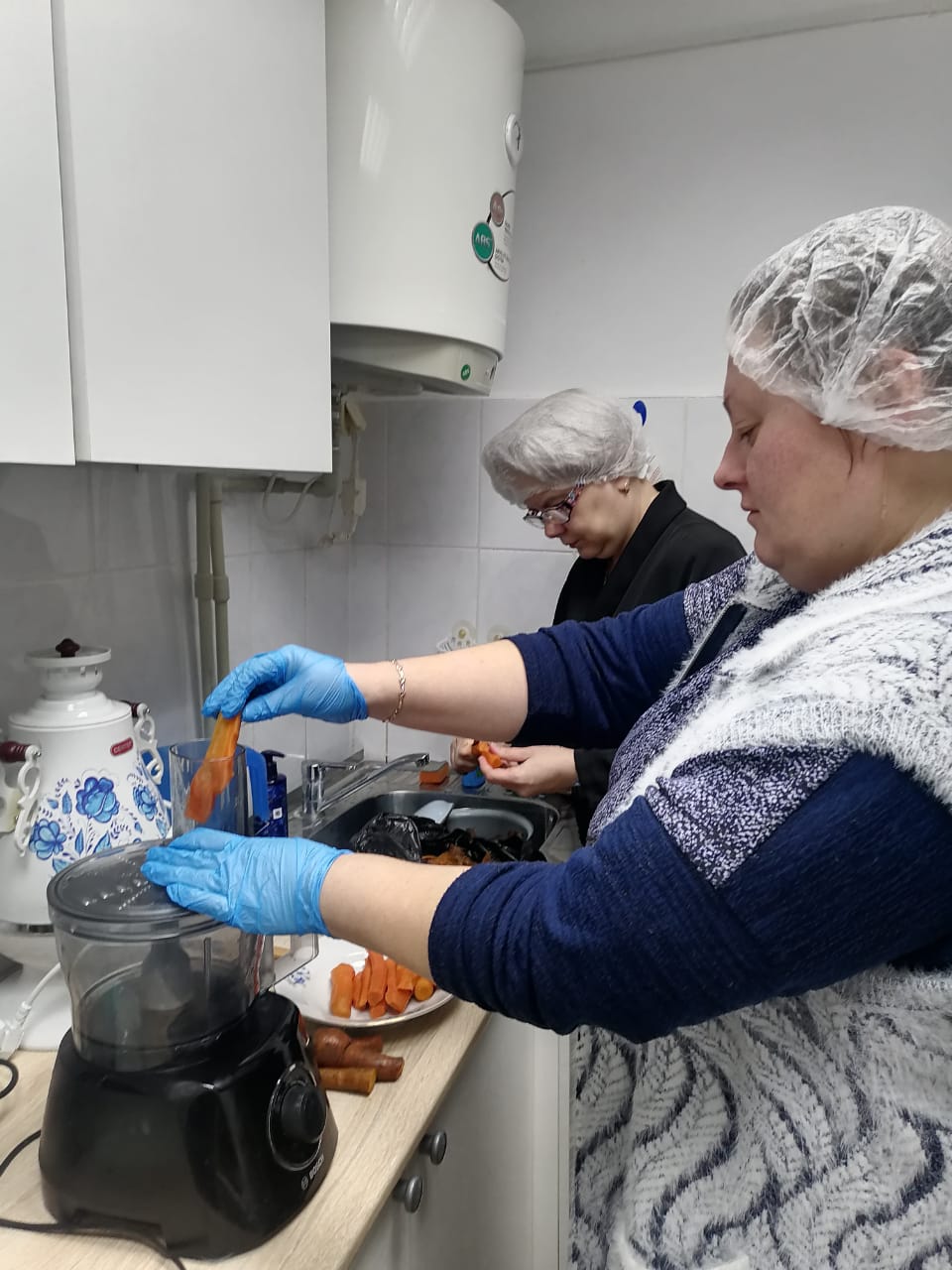 Сотрудники отделения "Специализированный жилой дом для граждан пожилого возраста и инвалидов" ГБУ "КЦСОН Краснобаковского муниципального округа" продолжают сушить овощи для изготовления сухих супов, отправляемых в зону действия СВО