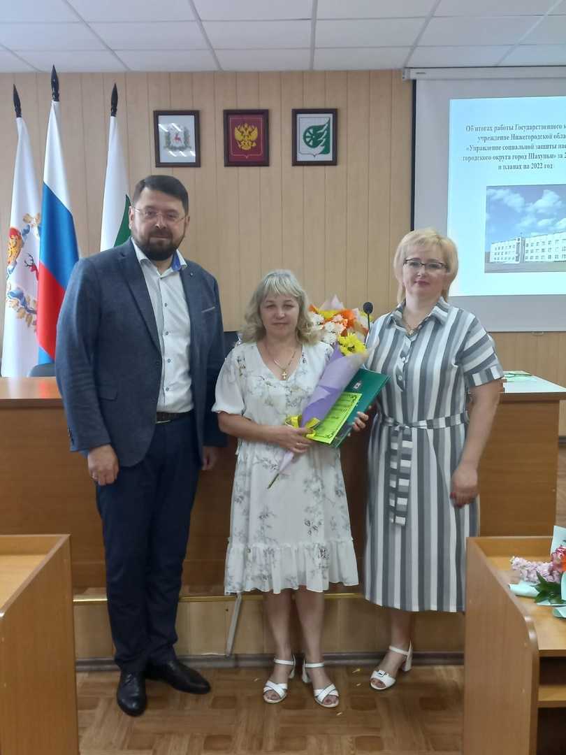 В связи с празднованием Дня социального работника, благодарственным письмом Министерства социальной политики Нижегородской области награждена социальный работник Батанова Зинаида Витальевна, благодарственным письмом администрации городского округа город Шахунья награжден водитель Виноградов Владимир Николаевич, благодарственными письмами Управления социальной защиты населения городского округа город Шахунья награждены слесарь-электрик Холод Павел Геннадьевич, социальные работники Становова Светлана Владимировна и Медведева Наталья Сергеевна